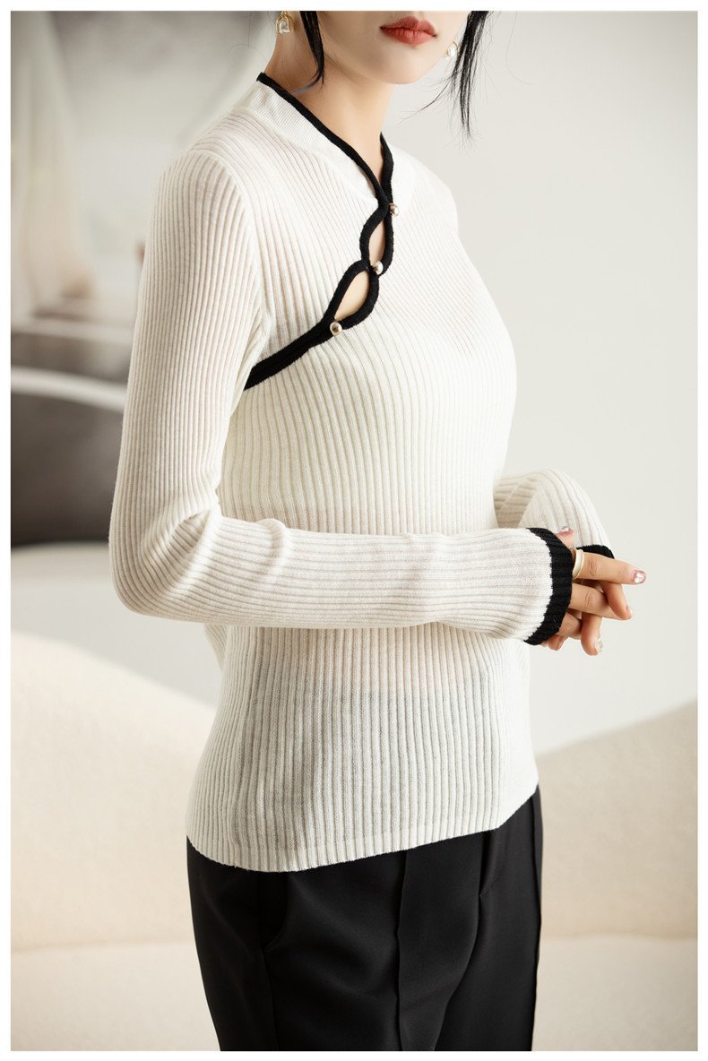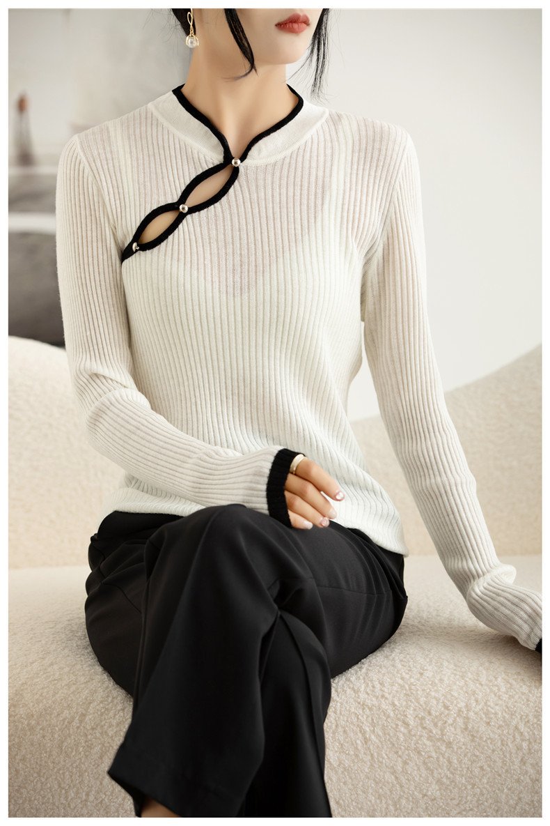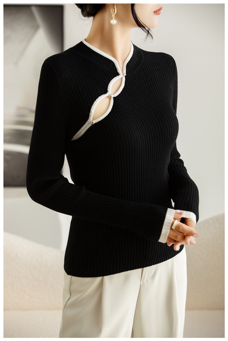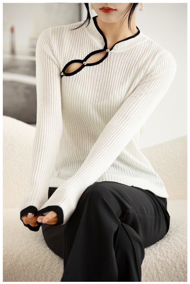 Wool Hollow-out Plate Buckle Stand Collar Design Sweater Thin
