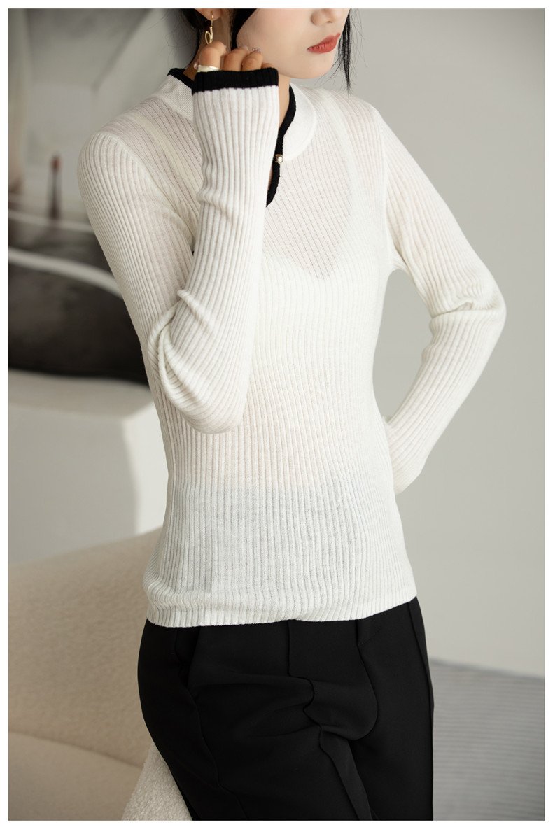 Be the first to review “Wool Hollow-out Plate Buckle Stand Collar Design Sweater Thin”