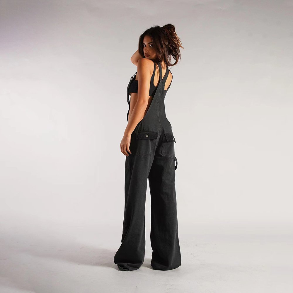 Style: wide leg pants suspender pants